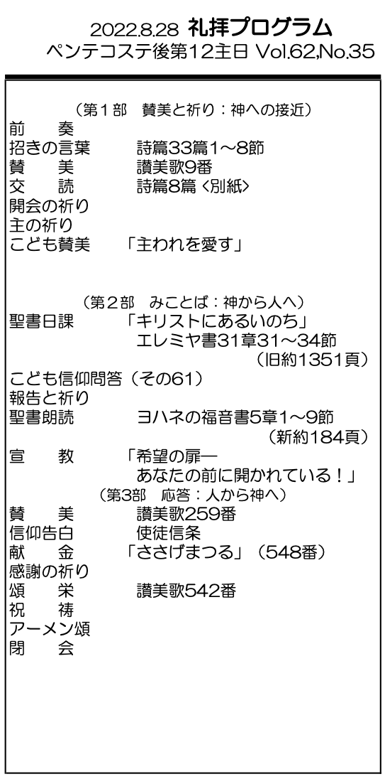 2022年8月28日 ペンテコステ後第12主日/原田憲夫師(横浜緑園キリスト教会巡回宣教使) 「希望の扉ーあなたの前に開かれている!」