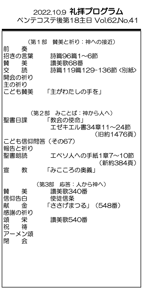 2022年10月9日 ペンテコステ後第18主日/野村天路 師 「みこころの奥義」