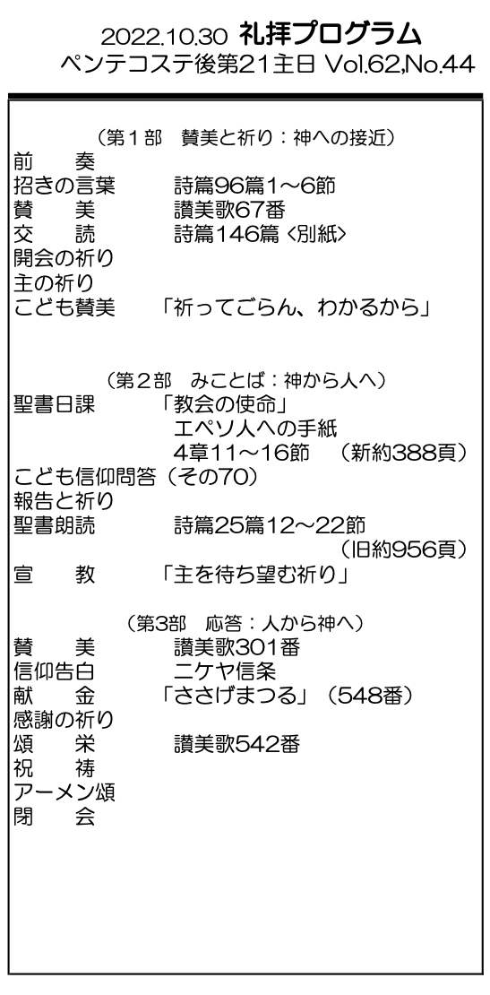 2022年10月30日 ペンテコステ後第21主日/野村天路 師 「主を待ち望む祈り」