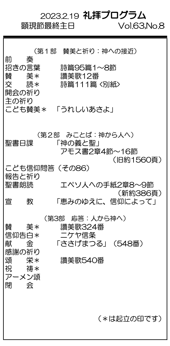 2023年2月19日 顕現後最終主日/野村天路 師 「恵みのゆえに、信仰によって」