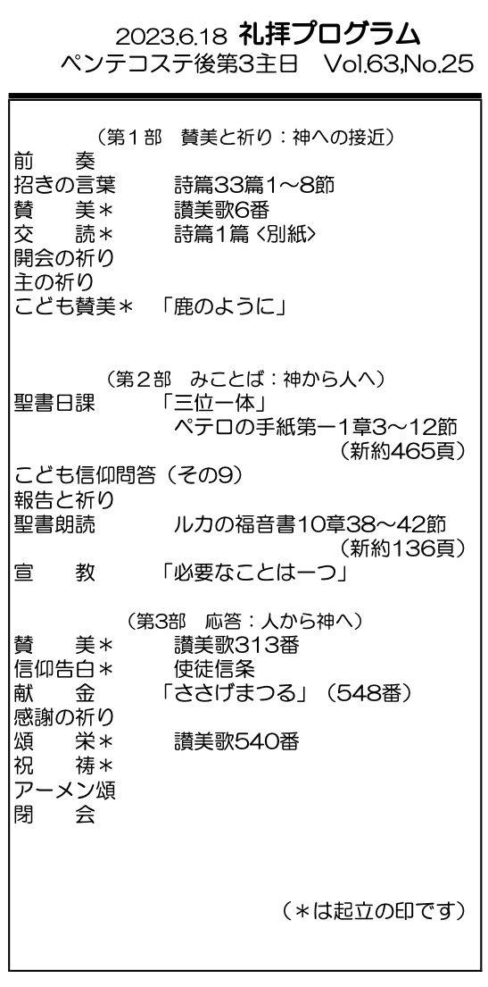 2023年6月18日 ペンテコステ後第3主日 /牧 岳司 師(二宮山西キリスト教会牧師) 「必要なことは一つ」