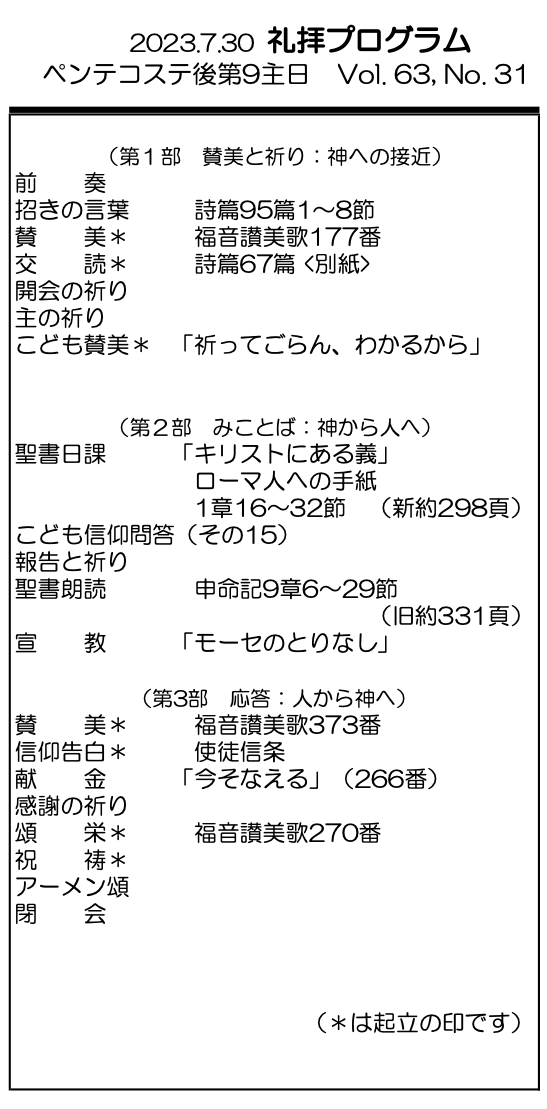 2023年7月30日 ペンテコステ後第9主日 /野村天路 師 「モーセのとりなし」