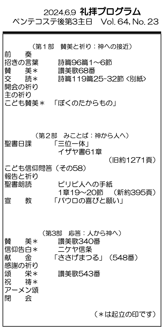 2024年6月9日 ペンテコステ後第3主日/野村天路 師 「パウロの喜びと願い」