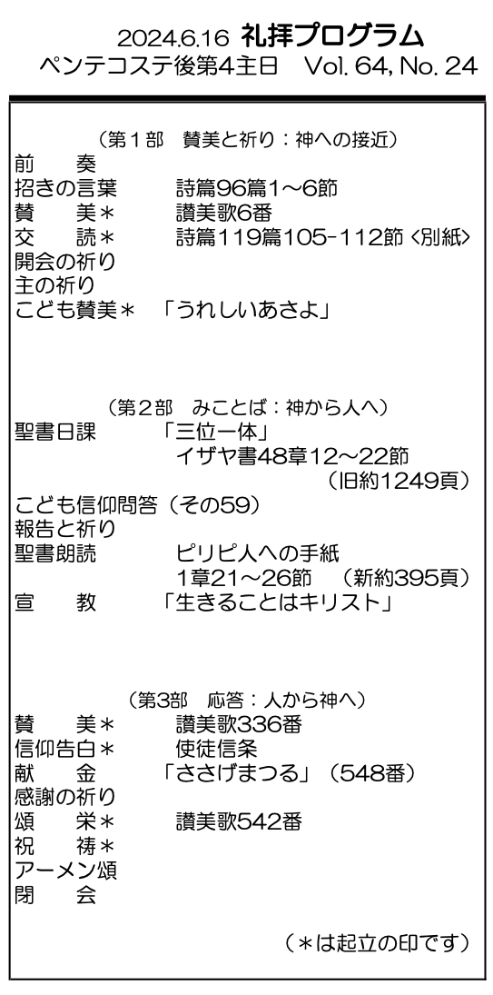 2024年6月16日 ペンテコステ後第4主日/野村天路 師 「生きることはキリスト」