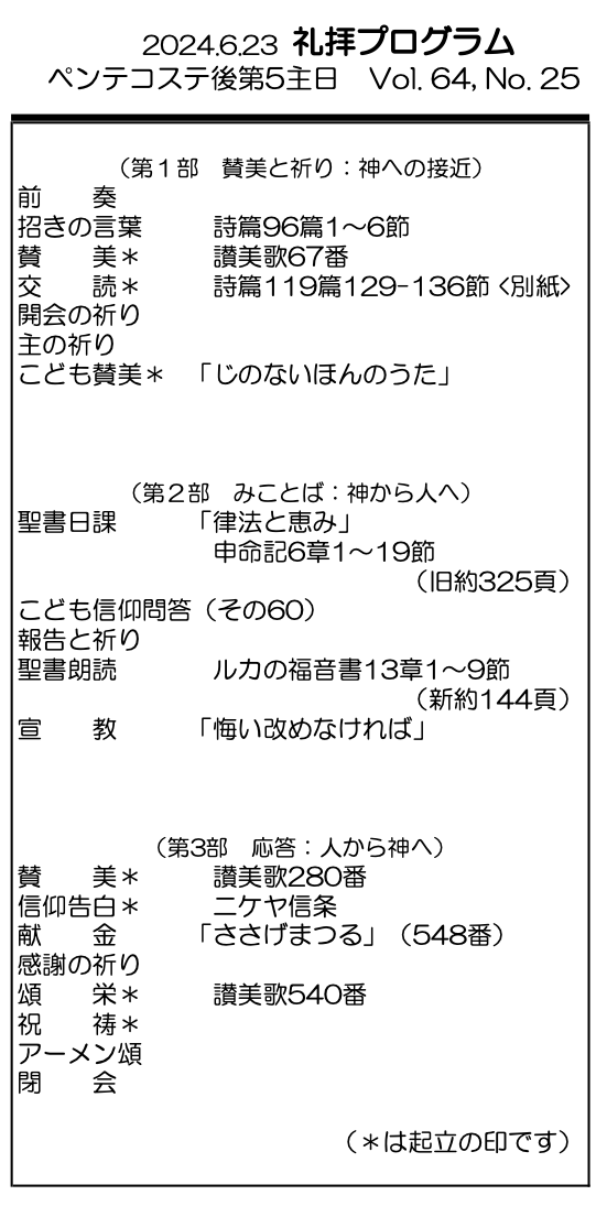 2024年6月23日 ペンテコステ後第5主日/野村天路 師 「悔い改めなければ」