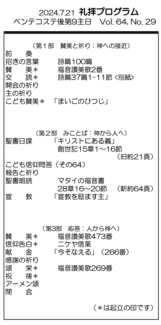 2024年7月21日 ペンテコステ後第9主日/武田遣嗣師(リーベンゼラ国内宣教師) 「宣教を励ます主」