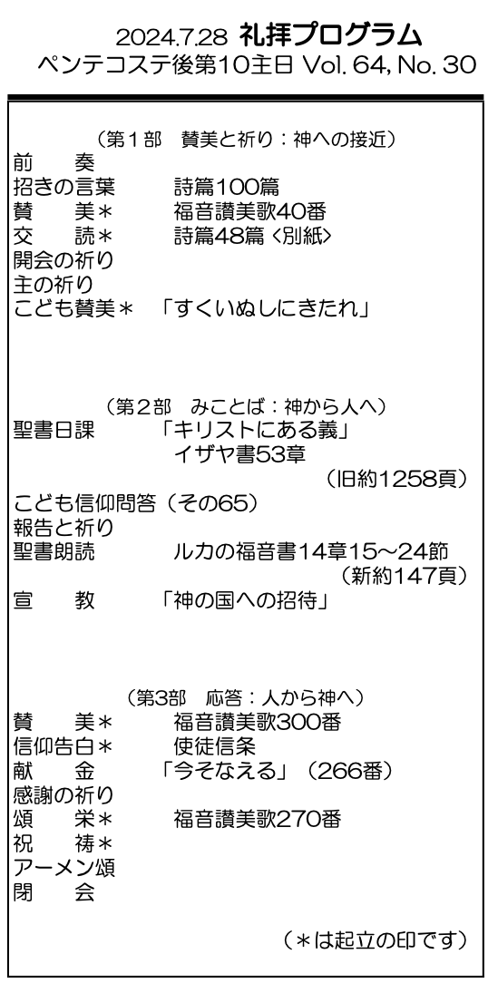 2024年7月28日 ペンテコステ後第10主日/野村天路 師 「神の国への招待」