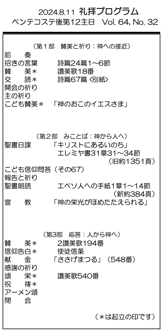 2024年8月11日 ペンテコステ後第12主日/後藤優香 神学生 「神の栄光がほめたたえられる」