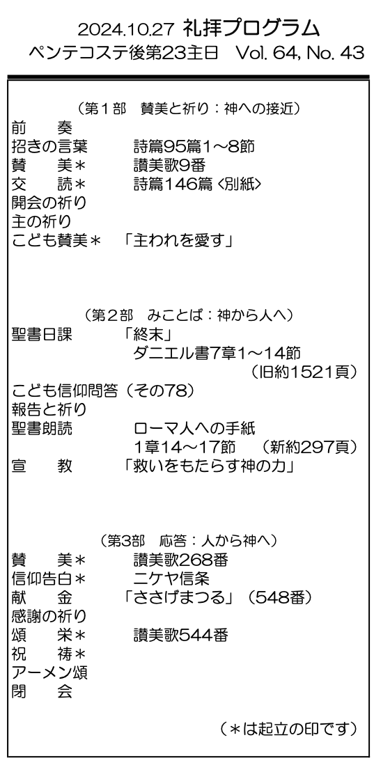 2024年10月27日 ペンテコステ後第23主日/油井義昭師(田園つくし野福音教会協力牧師) 「救いをもたらす神の力」