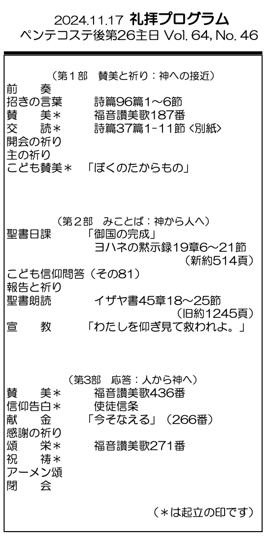 2024年11月17日 ペンテコステ後第26主日/ 羽鳥頼和 師(自由ヶ丘キリスト教会牧師) 「わたしを仰ぎ見て救われよ」