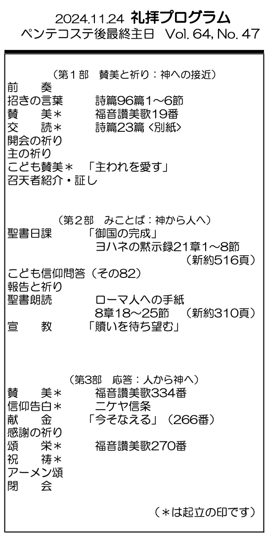 2024年11月24日 ペンテコステ後最終主日/野村天路 師 「贖いを待ち望む」