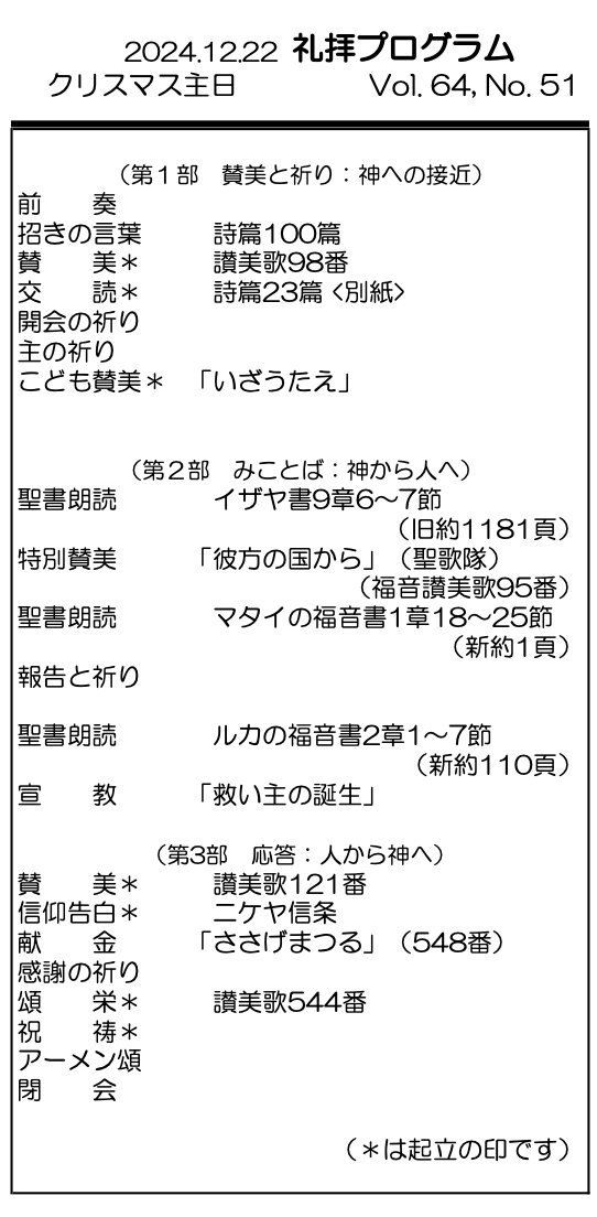 2024年12月22日 クリスマス主日/野村天路 師 「救い主の誕生」