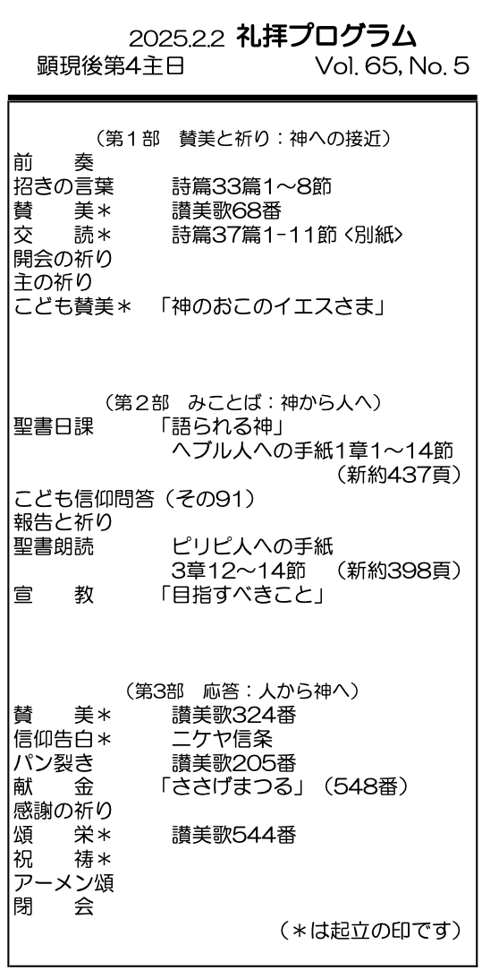 2025年2月2日 顕現後第4主日/野村天路 師 「目指すべきこと」