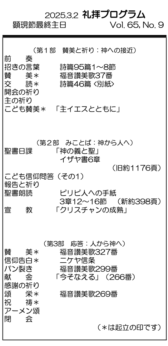 2025年3月2日 顕現節最終主日/野村天路 師 「クリスチャンの成熟」