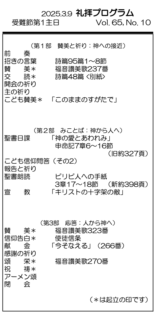 2025年3月9日 受難節第1主日/野村天路 師 「キリストの十字架の敵」