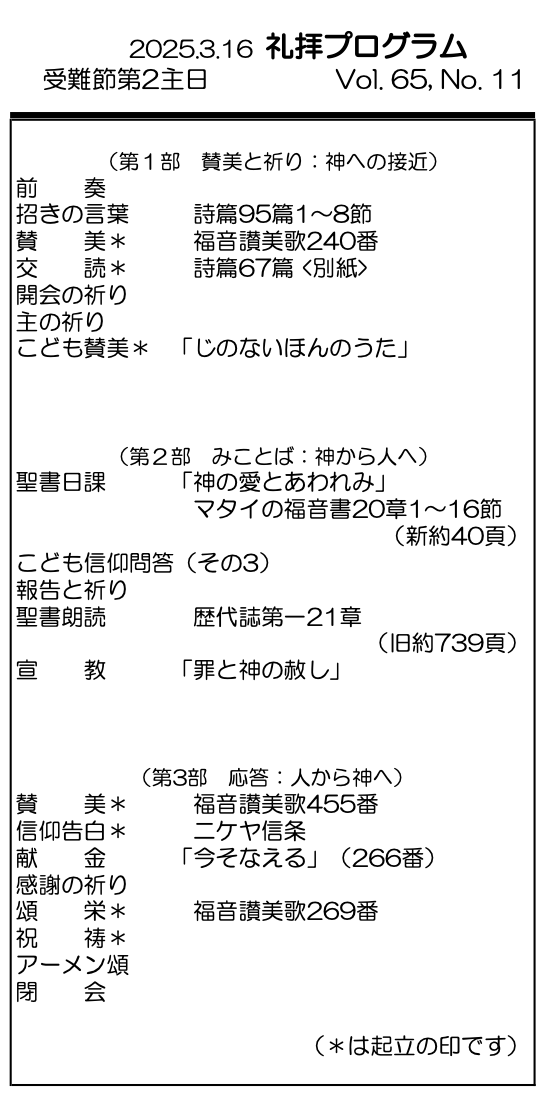 2025年3月16日 受難節第2主日/後藤優香 神学生 「罪と神の赦し」