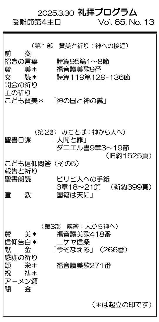 2025年3月30日 受難節第4主日/野村天路 師 「国籍は天に」