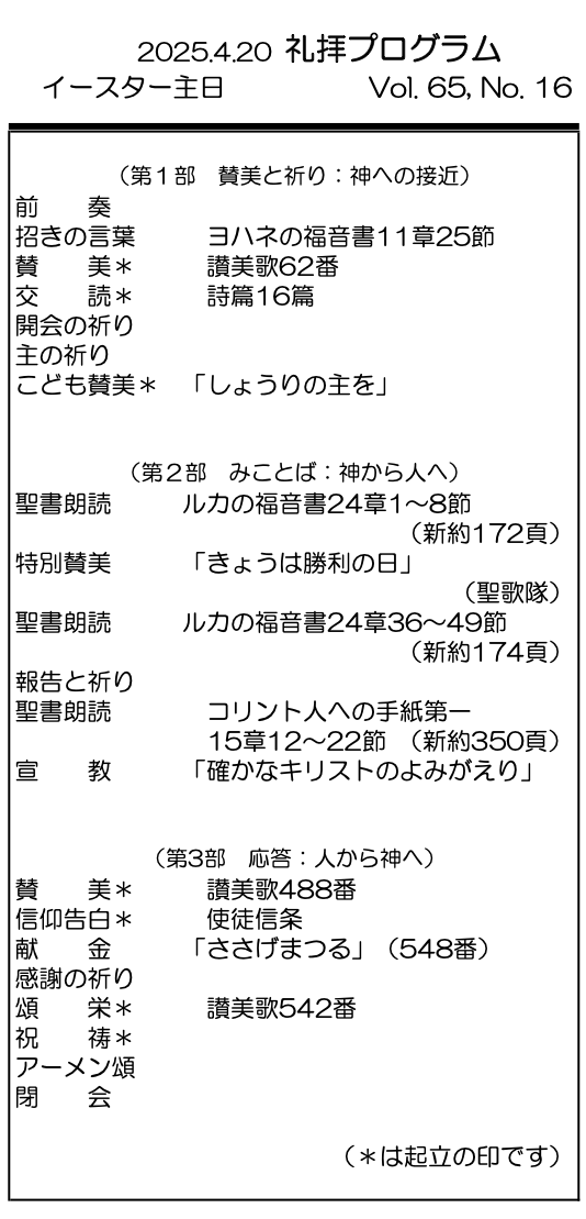 2025年4月20日 イースター主日/村上正道 師 「確かなキリストのよみがえり」