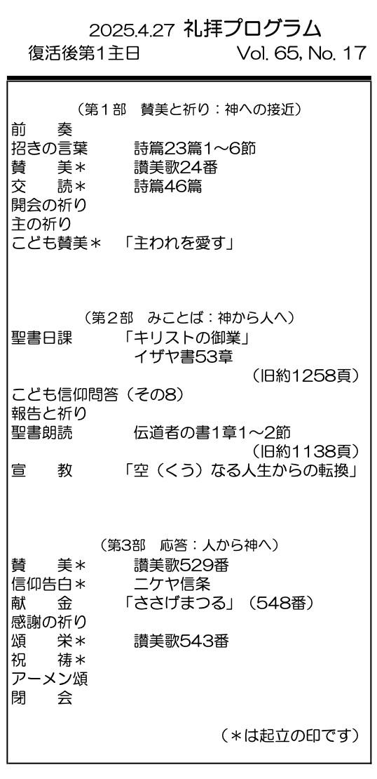2025年4月27日 復活後第1主日/村上正道 師 「空なる人生からの転換」