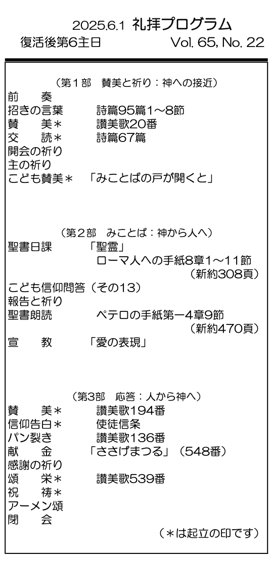 2025年6月1日 復活後第6主日/村上正道 師 「愛の表現」