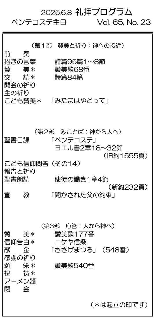 2025年6月8日 ペンテコステ主日/村上正道 師 「聞かされた父の約束」