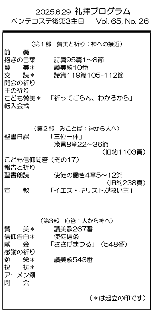 2025年6月29日 ペンテコステ後第3主日/村上正道 師 「イエス・キリストが救い主」