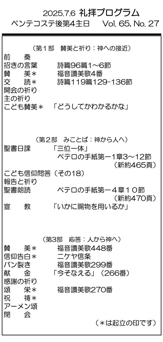 2025年7月6日 ペンテコステ後第4主日/村上正道 師 「いかに賜物を用いるか」
