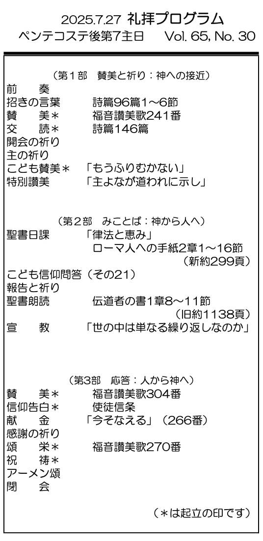 2025年7月27日 ペンテコステ後第7主日/村上正道 師 「世の中は単なる繰り返しなのか」