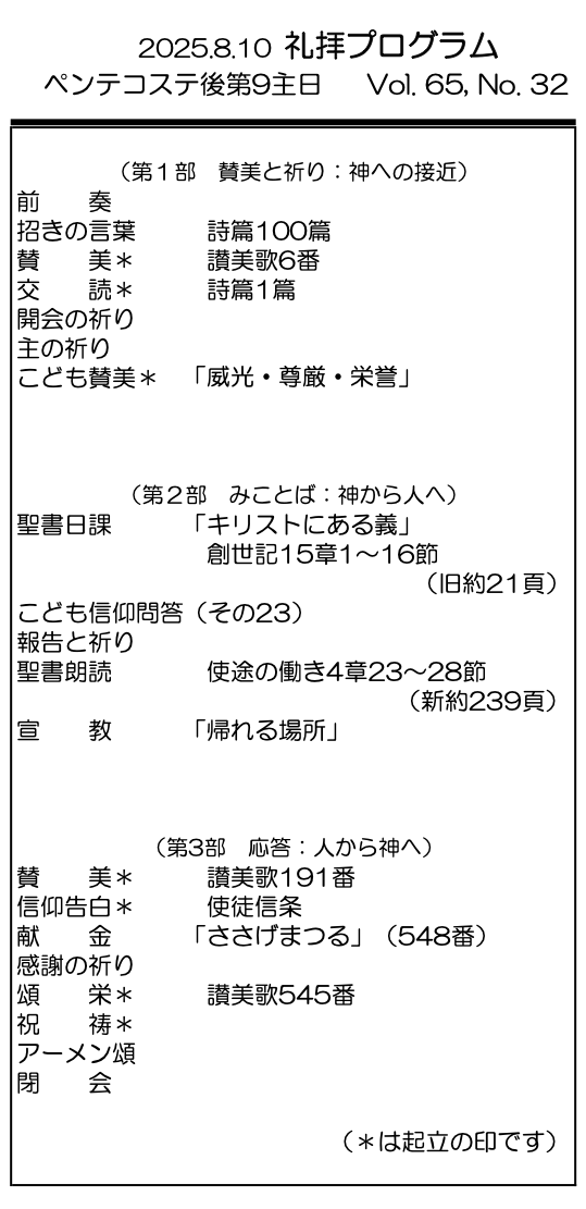 2025年8月10日 ペンテコステ後第9主日/村上正道 師 「帰れる場所」