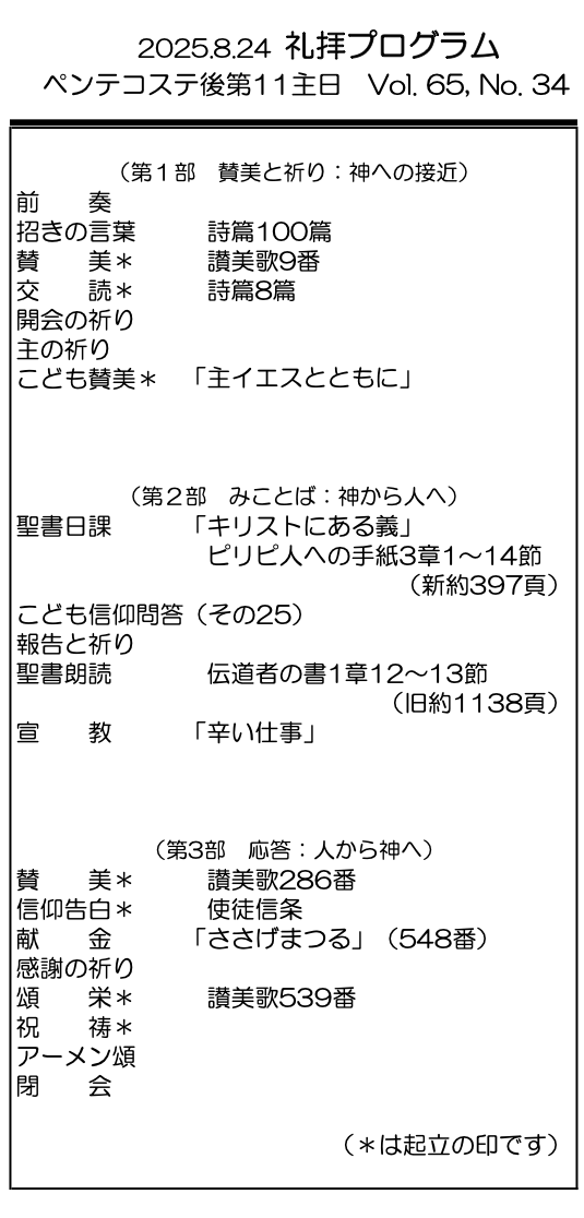 2025年8月24日 ペンテコステ後第11主日/村上正道 師 「辛い仕事」