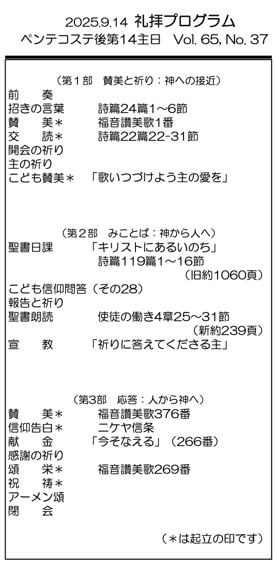 2025年9月14日 ペンテコステ後第14主日/村上正道 師 「祈りに答えてくださる主」