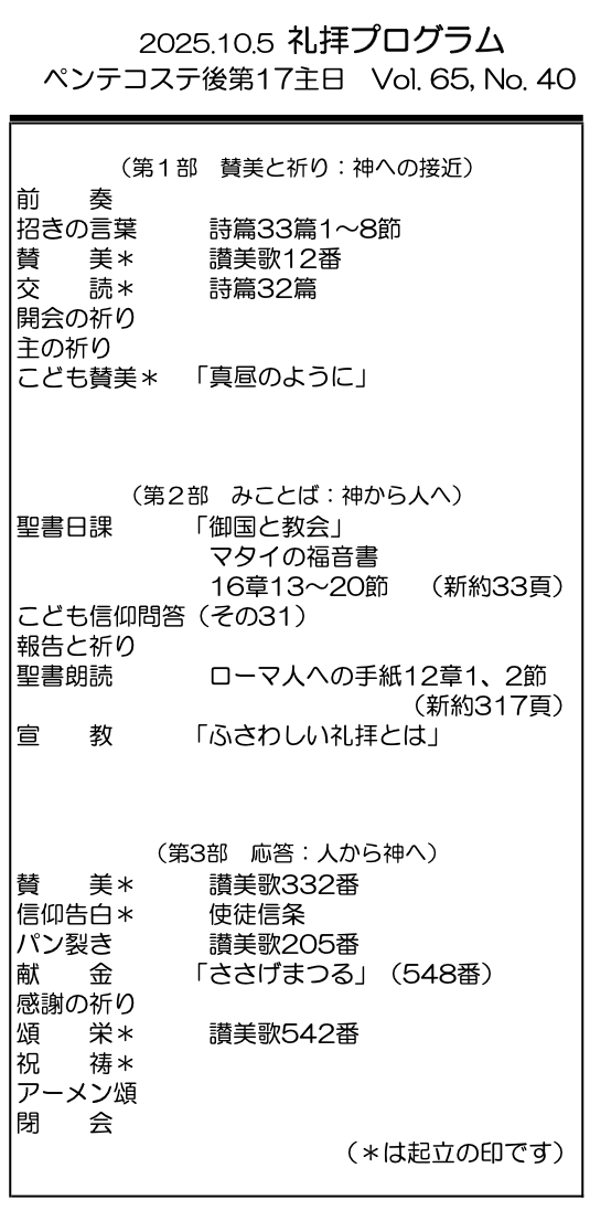 2025年10月5日 ペンテコステ後第17主日/村上正道 師 「ふさわしい礼拝とは」