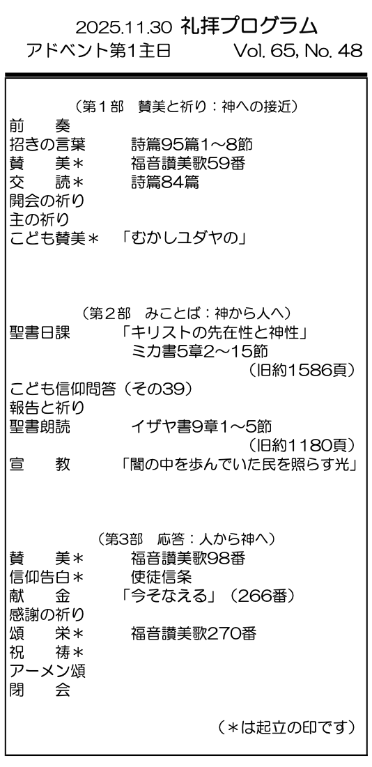 2025年11月30日 アドベント第1主日/村上正道 師 「闇の中を歩んでいた民を照らす光」