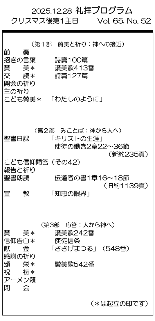 2025年12月28日 クリスマス後第1主日/村上正道 師 「知恵の限界」