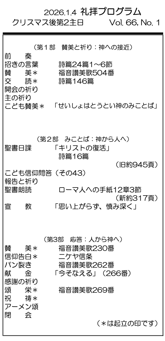 2026年1月4日 クリスマス後第2主日/村上正道 師 「思い上がらず、慎み深く」