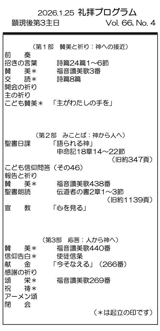 2026年1月25日 顕現後第3主日/村上正道 師 「心を見る」