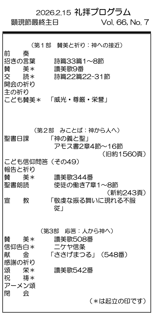 2026年2月15日 顕現後最終主日/村上正道 師 「敬虔な振る舞いに現れる不服従」
