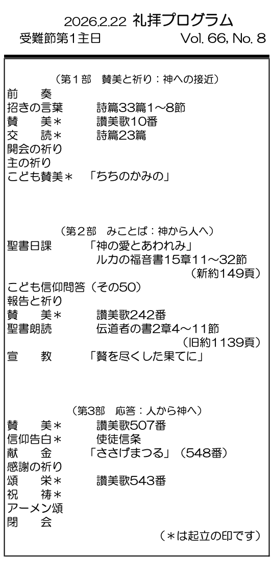 2026年2月22日 受難節第1主日/村上正道 師 「贅(ぜい)を尽くした果てに」