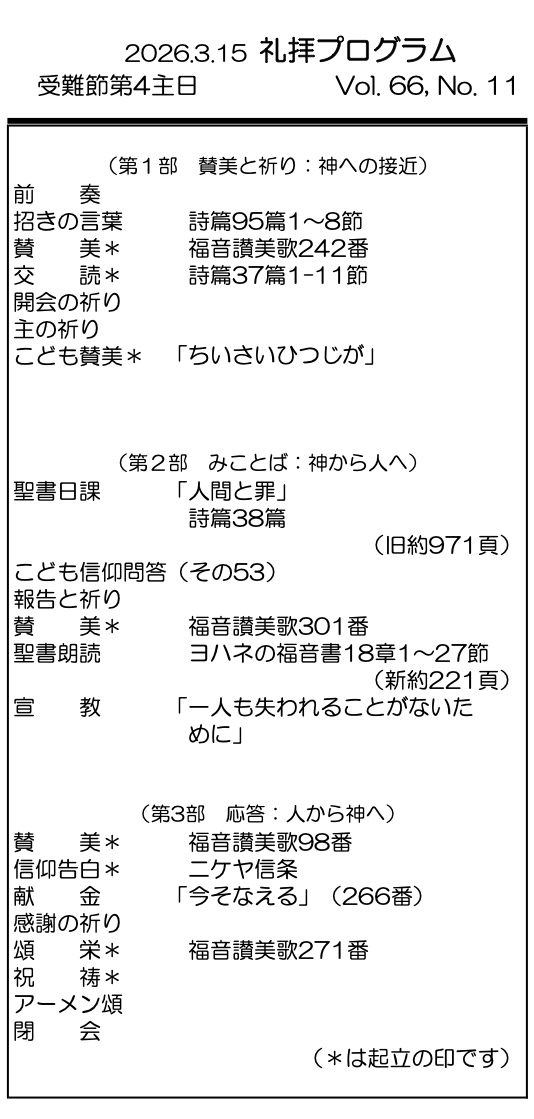 2026年3月15日 受難節第4主日/村上正道 師 「一人も失われることがないために」